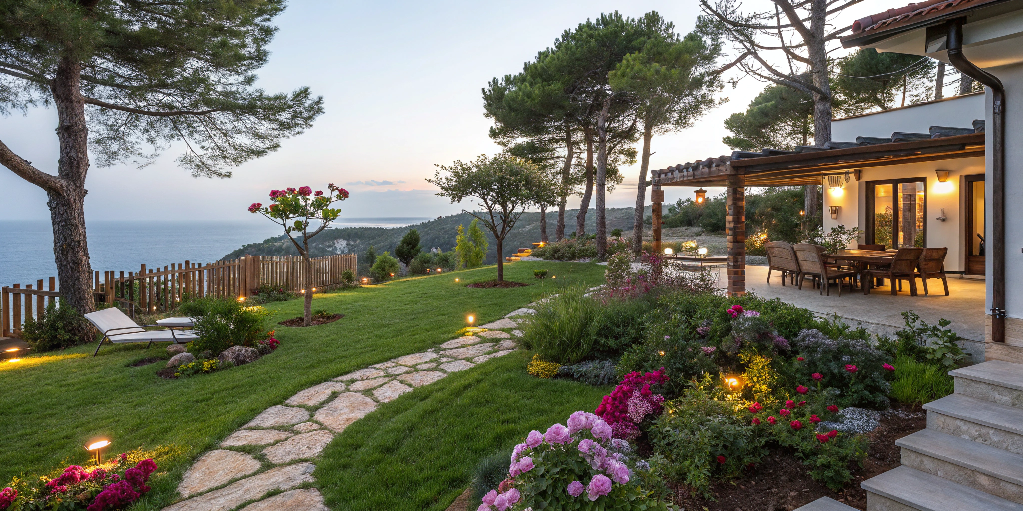 Bahçe düzenlemesi, yürüyüş yolları, veranda hazırlığı. Sadece evin içi değil, dışı da yaşama hazır.