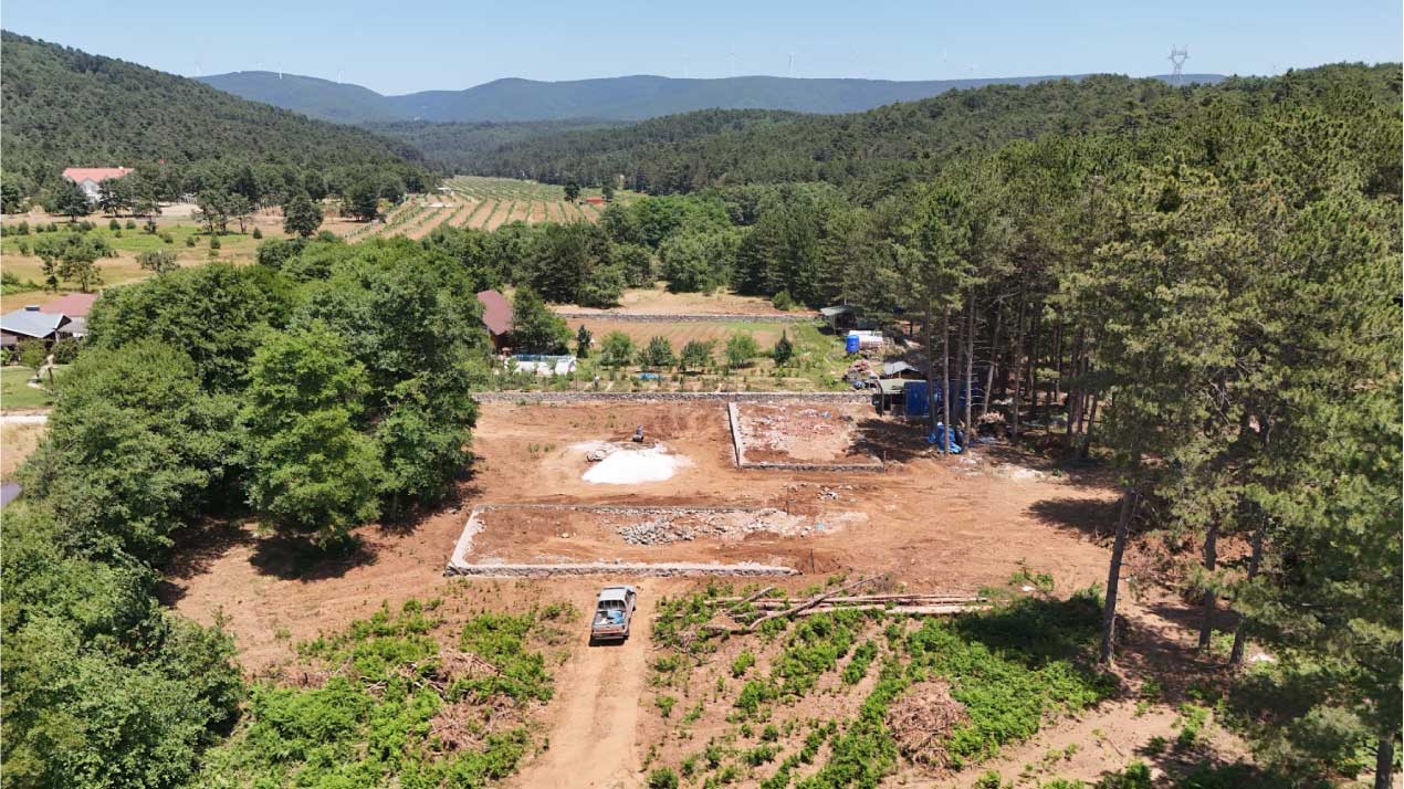 Arazi, inşaata hazır hale getirilir. Tüm altyapı bağlantıları ve şantiye organizasyonu tamamlanır.